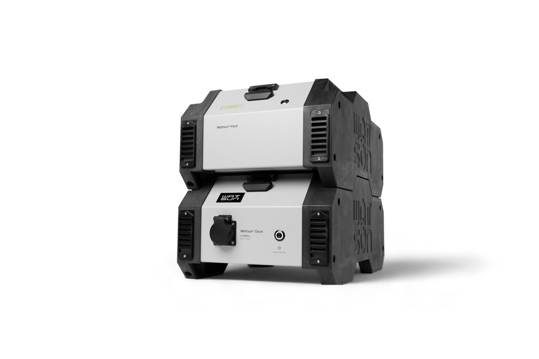 Op onze productpagina’s vind je alle informatie die je nodig hebt over ons stapelbare batterijsysteem. De Wattsun Stack bestaat uit een Dock en optioneel uit één of meerdere Packs. De Dock is de basis van het batterijsysteem en levert 3000 watt vermogen, de Packs zorgen voor meer batterijcapaciteit. Stapel tot wel vier Packs op een Dock en creëer een mobiele stroomvoorziening van maar liefst 11 kWh.